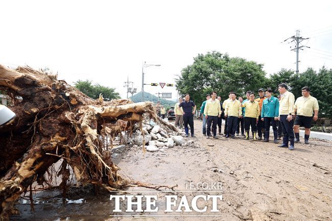 김동연 지사는 이날 가평군 상면 대보교에서 호우피해 현황을 살핀 뒤 "너무 안타깝다. 모두 복구될 때까지 최선을 다해야 한다. 매몰 지역이나 격리 지역에 있는 연락 안 되는 분들을 중심으로 인명구조를 최우선적으로 해야 한다"고 주문했다.