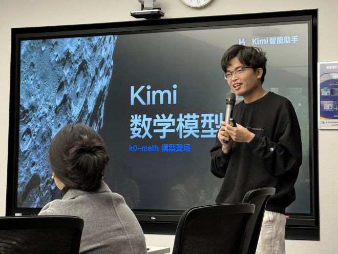 중국 인공지능 기업 ‘문샷AI’를 창업한 양즈린이 자사의 인공지능 키미에 대해 설명하고 있다. 바이두 캡처