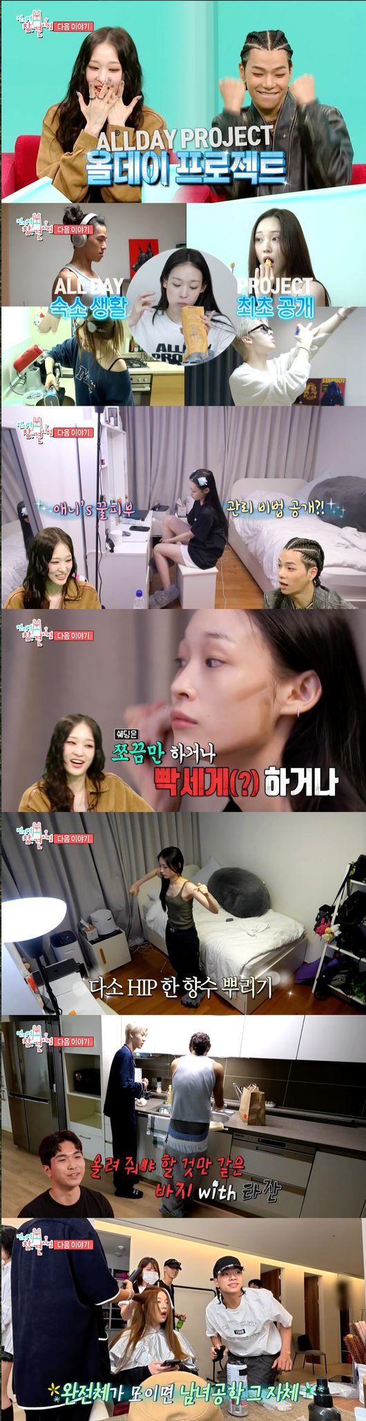 숙소 생활을 하고 있는 올데이 프로젝트는 "남자 여자 나눠서 총 2채에서 생활을 하고 있다"고 밝히며 숙소에서의 일상을 꾸밈없이 공개했다.