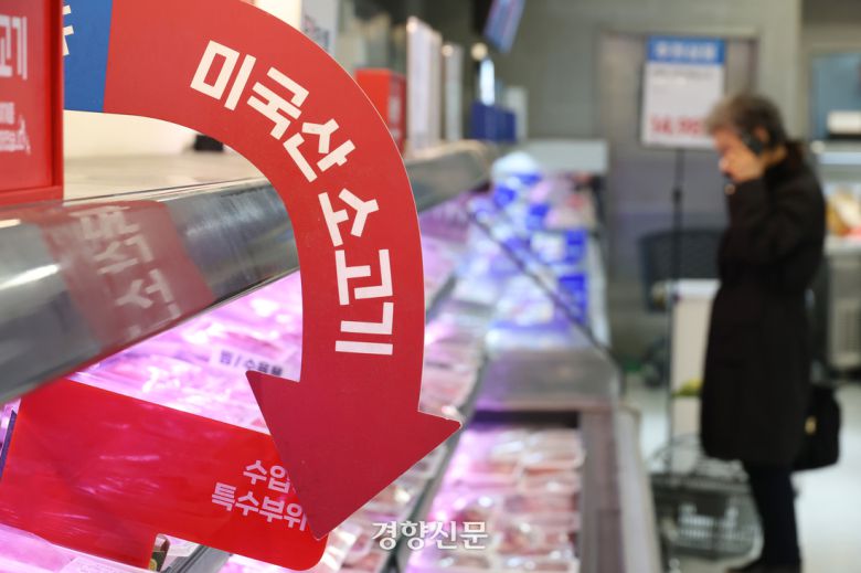 미국 전국소고기협회가 트럼프 정부에 한국의 ‘30개월 이상 소고기 수입 금지’ 규정을 풀어달라고 의견서를 제출한 지난 3월12일 서울시내 한 대형마트에 미국산 소고기가 진열돼 있다. 정효진 기자