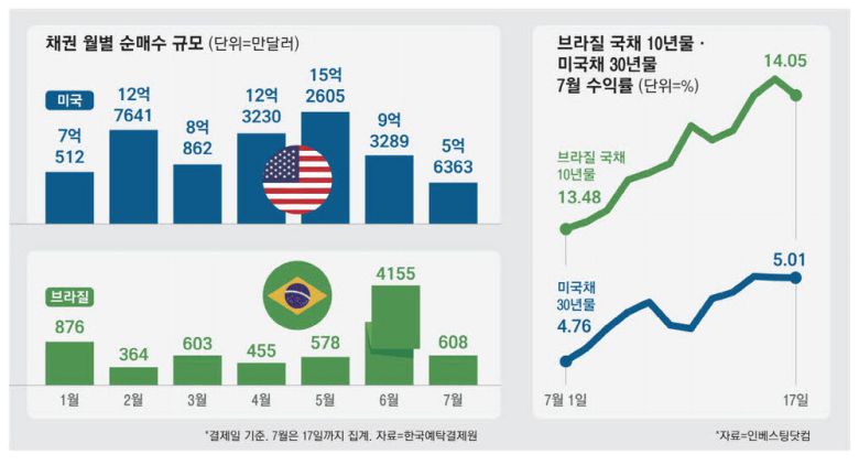"관세전쟁이 기회"…브라질채권 몰려간 개미