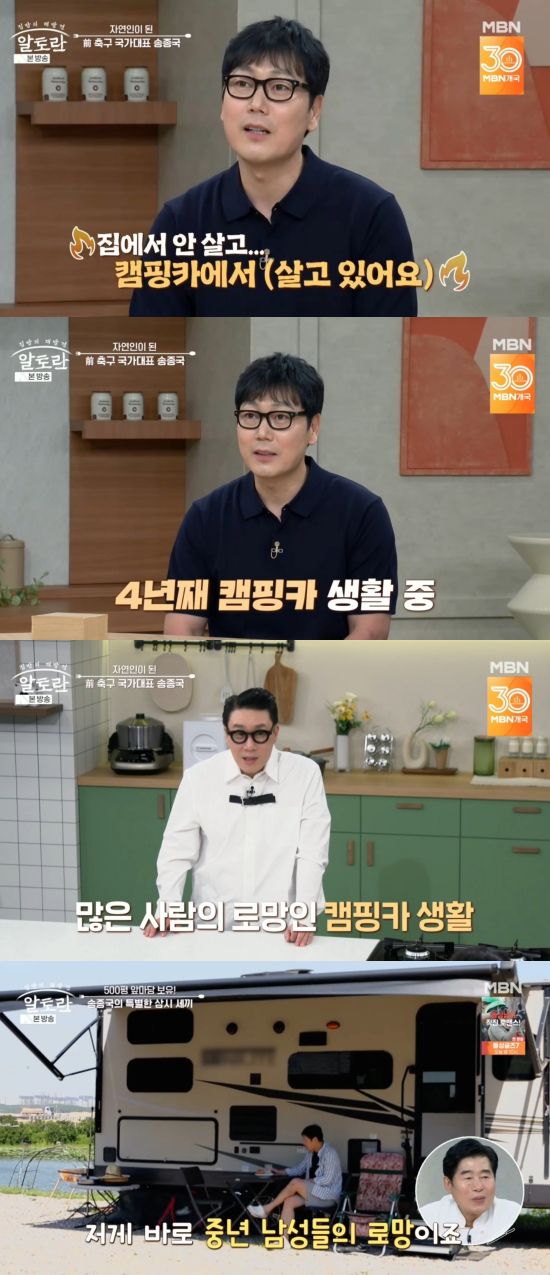 이에 송종국은 "집에서 안 살고 캠핑카에서 살고 있다. 4년 정도 됐다"며 "평소에 캠핑하면서 편하게 살자는 생각으로 지내다 보니 시간이 흘렀다. 아파트보다 캠핑카가 훨씬 더 편하다"라고 대답했다.