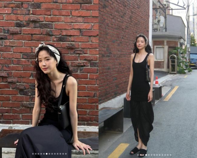 사진 속 손나은은 민소매에 롱스커트를 입고 올블랙룩을 선보인 채 포즈를 취했다. 두건을 머리에 두른 그는 특유의 미소와 함께 자신만의 분위기를 자아내고 있다.