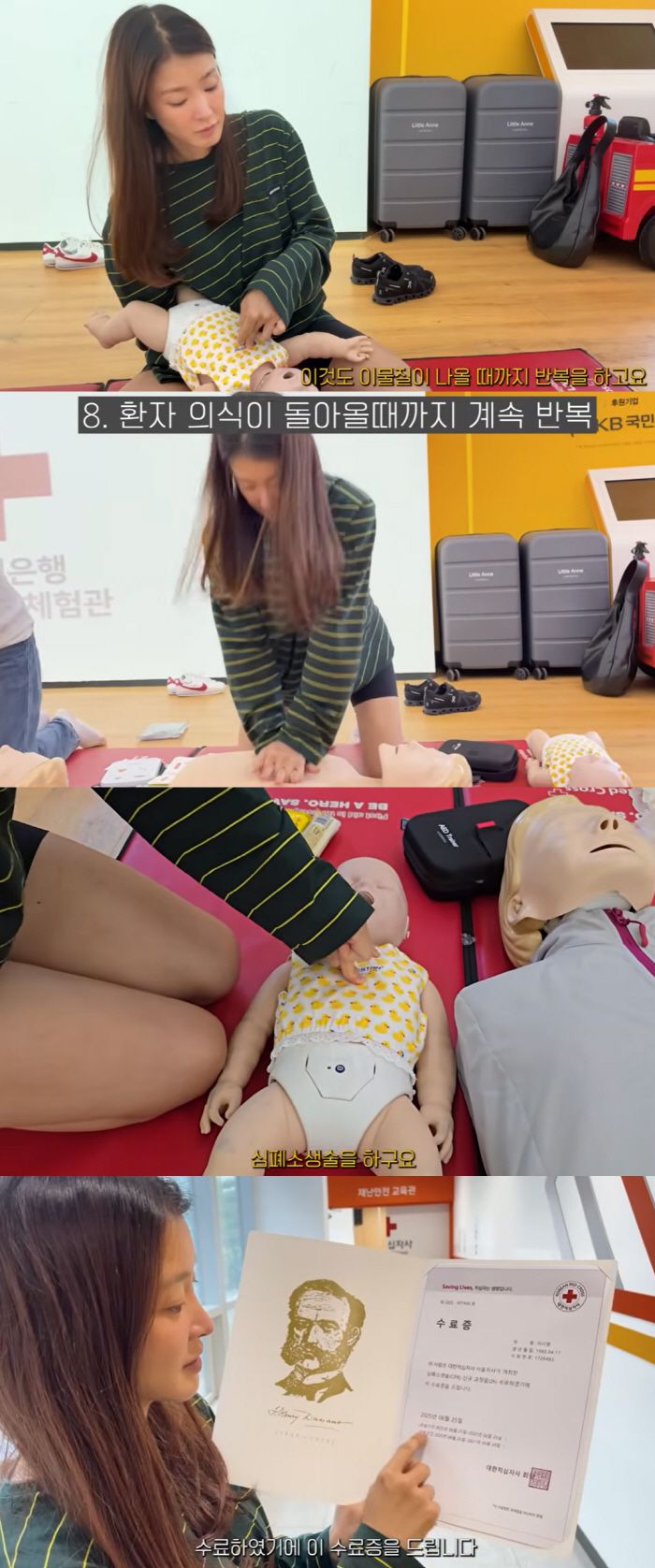 20일 채널 뿌시영 채널에는 이시영이 대한적십자사 재난안전센터를 찾아 하임리히법과 심폐소생술 등을 배우고 CPR 수료증을 따는 모습이 공개됐다.