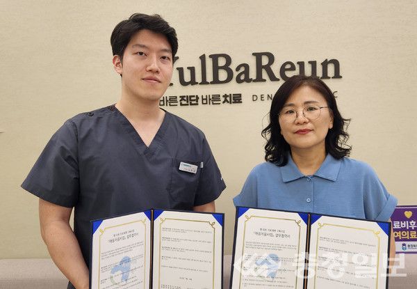 임현택 서울율바른치과의원 병원장(왼쪽)과 이강표 음성군정신건강복지센터장이 정신건강 증진사업을 위해 업무협약을 체결했다. |