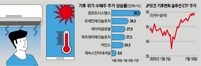 기후변화에 따라 폭염과 홍수, 산불 등 기후 재난이 빈번해지면서 냉방·방재 인프라스트럭처 관련 업체들이 강세를 보이고 있다.