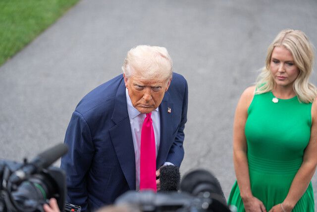 도널드 트럼프 미국 대통령(왼쪽)이 지난 15일 미국 워싱턴디시(D.C.) 백악관에서 기자들의 질문에 답하고 있다. 워싱턴/신화 연합뉴스