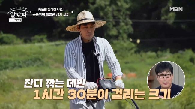 아침을 먹은 뒤 송종국은 축구장 만큼 넓은 잔디밭을 관리했다. 약 1시간 30분 가량의 잔디 손질을 마친 송종국은 점심 시간이 되자 텃밭에서 직접 키운 채소들을 주재료로 한 샐러드를 가볍게 먹었다. 이때 손님으로 레오가 찾아왔고, 송종국은 2002년 한일월드컵 기념 사진을 선보이며 “당시에는 히딩크 감독님이 오시기 전부터 유명하고 잘하는 선수들이 많았는데, 저 같은 경우는 감독님이 오신 뒤 처음으로 발탁한 선수였다. 그래서 더 좋아하셨던 건 아닌가 싶다”고 말했다.