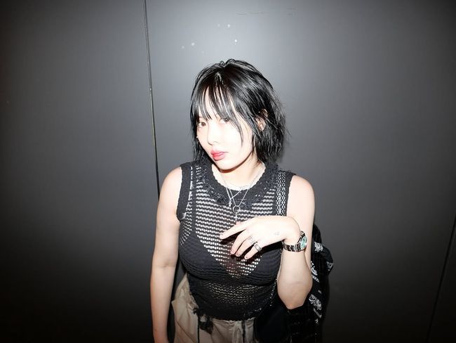 사진 속 현아는 검은색 망사 소재의 슬리브리스 상의를 입고 과감한 패션을 선보였다. 상의 안으로는 블랙 브라톱이 선명하게 드러나 현아 특유의 당당하고 섹시한 매력을 한껏 발산했다.