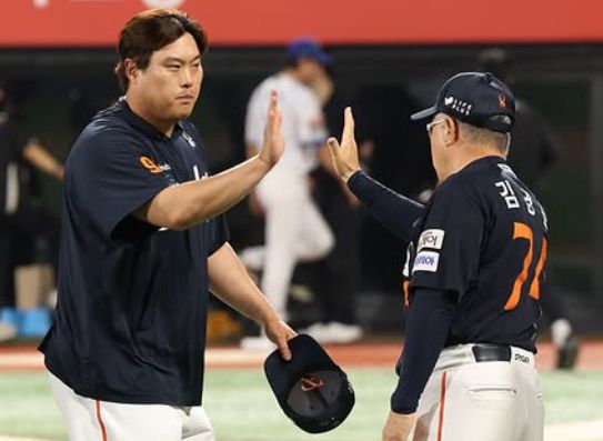 류현진, 김경문 감독 (사진=한화이글스 SNS) |