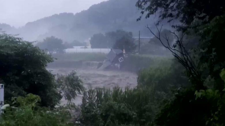 조종면에 있는 하천 옆 주택은 바닥이 무너지면서 물속으로 빠지기 직전입니다.