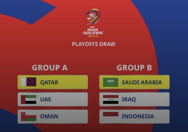 추첨결과 A조에 오만, 카타르, 아랍에미레이츠가 속했다. 인도네시아는 B조에서 사우디아라비아, 이라크와 경쟁하게 됐다. 플레이오프는 오는 10월 8일부터 14일까지 개최된다. 총 6개팀 중 각 조 1위팀 두 팀만 자동으로 진출권을 딴다.