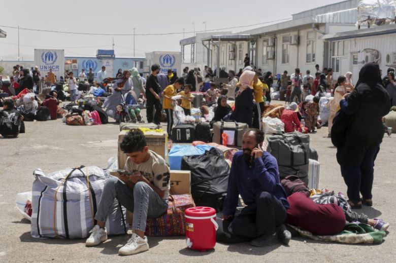 과거 이란으로 떠났다가 강제 추방된 아프가니스탄 난민들이 지난 6월 20일 이란과 인접한 아프가니스탄 서부 헤라트주의 이슬람 칼라 검문소에서 유엔난민기구(UNHCR) 시설 주변에 모여있다.AP뉴시스