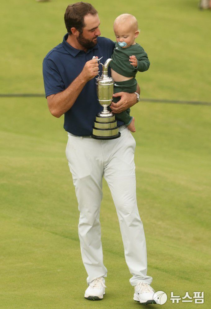 [서울=뉴스핌] 박상욱 기자 = 로열 포트러시를 지배한 남자골프 세계랭킹 1위 스코티 셰플러(29·미국)가 생애 처음 클라레 저그를 품었다. 마지막 18번홀에서 짧은 챔피언 퍼트를 마친 셰플러는 두 팔을 번쩍 치켜들고 세계 최고(最古) 역사의 골프대회를 제패한 기쁨을 만끽했다. 이어 아들 베넷을 안고 그린으로 나온 아내와 깊은 포옹을 나누며 성실하고 신앙심 깊은 가장의 면모를 과시했다.