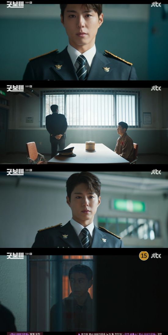 20일 방송된 JTBC 토일드라마 '굿보이' 16회(최종회)에서는 윤동주(박보검 분)가 교도소에 수감된 민주영(오정세)과 면회하는 모습이 그려졌다.