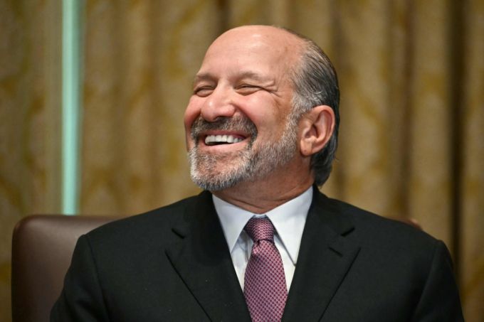 하워드 러트닉 미국 상무장관이 지난 8일(현지시간) 워싱턴 백악관에서 도널드 트럼프 대통령이 주최한 내각회의에 참석하며 환하게 웃고 있다. /AFPBBNews=뉴스1 |