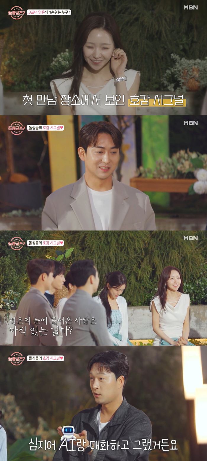 김명은을 첫인상 1순위로 꼽은 이동건은 주방에서 함께 식사를 준비하면서 친밀감을 쌓았다. 첫 식사 자리에서부터 자리 쟁탈전이 벌어져 눈길을 끌었다. 장수하와 김명은이 먼저 자리에 앉자 남성 출연자들이 은근한 기싸움을 벌인 것. 김명은을 호감으로 꼽은 3인은 이인형과 이동건, 김도형이었다. 세 사람은 은근한 플러팅을 하며 호감을 드러냈다.