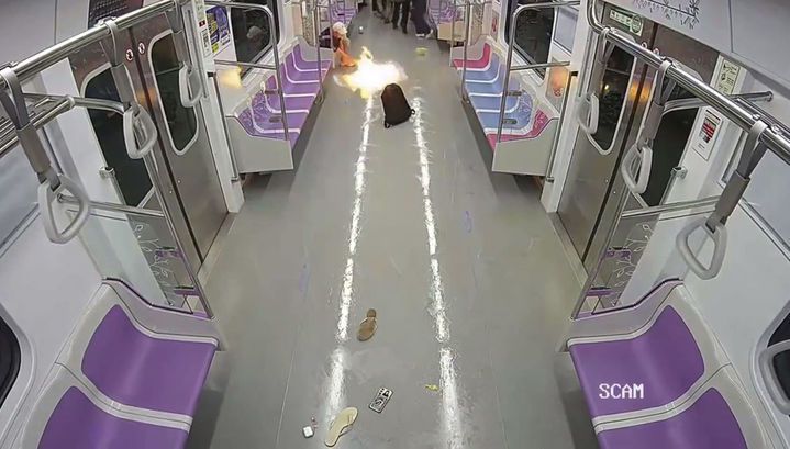[서울=뉴시스] 지난 달 31일 오전 8시 42분쯤 60대 남성 원 모 씨가 지하철 5호선 여의나루역과 마포역 간 터널 구간을 달리는 열차에 불을 지르고 있다. 서울남부지검 ‘지하철 5호선 방화사건’ 전담수사팀(팀장 손상희 부장검사)은 25일 살인미수 및 현존전차방화치상죄 위반 등 혐의로 원모씨(67)를 구속기소했다고 밝혔다.(사진=서울남부지검 제공) 2025.06.25. photo@newsis.com *재판매 및 DB 금지 |