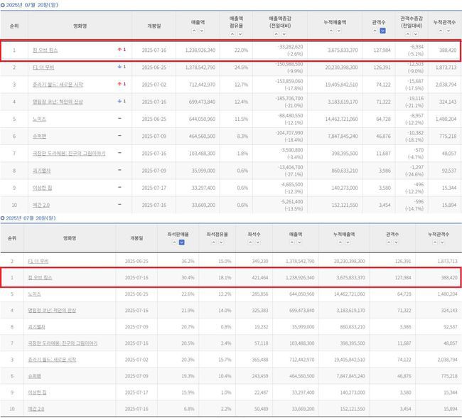 영화관입장권 통합전산망에 따르면, '킹 오브 킹스'는 7월 20일(일) 하루 동안 127,984명의 관객을 동원하며 전체 박스오피스 1위를 차지, 압도적인 흥행 파워를 입증했다. 또한 주말 이틀간 총 26만 6천여명을 동원하며 역대 국내 애니메이션 흥행 순위 1, 2위를 차지하고 있는 <마당을 나온 암탉>의 17만 6천, <사랑의 하츄핑>의 23만의 개봉 주말 스코어를 모두 뛰어넘는 성과를 거뒀다.