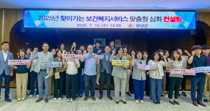 최근 경남 창녕군청 대회의실에서 열린 '찾아가는 보건복지서비스 맞춤형 심화 컨설팅'에 참여자들이 기념사진을 찍고 있다. [사진=창녕군] 2025.07.21 |