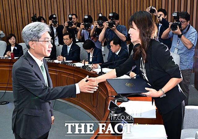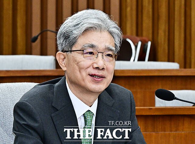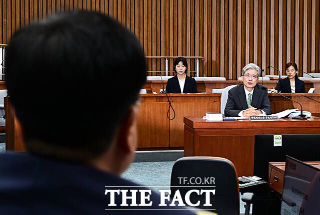 [더팩트ㅣ국회=배정한 기자] 김상환 헌법재판소 재판관 겸 헌법재판소장 후보자가 21일 오전 서울 여의도 국회에서 열린 인사청문회에 참석해 질의에 답변을 하고 있다.