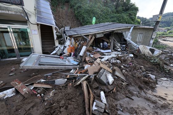 20일 경기도 가평군 조종면 신상3리에 내린 폭우로 인한 산사태가 발생해 나무와 토사가 민가를 덮쳤다. 김성룡 기자 |