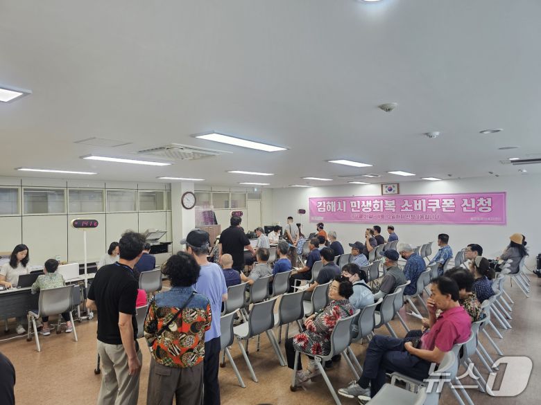 (김해=뉴스1) 박민석 기자 = "민생회복 소비쿠폰 신청하러 일찍 나왔는데도 사람들이 많네요"