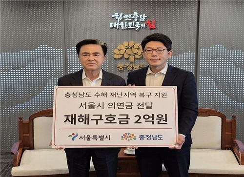 (서울=연합뉴스) 정수연 기자 = 서울시는 최근 이례적 집중호우로 인명·재산 피해를 본 충청남도에 재해구호금 2억원을 긴급 지원한다고 21일 밝혔다.