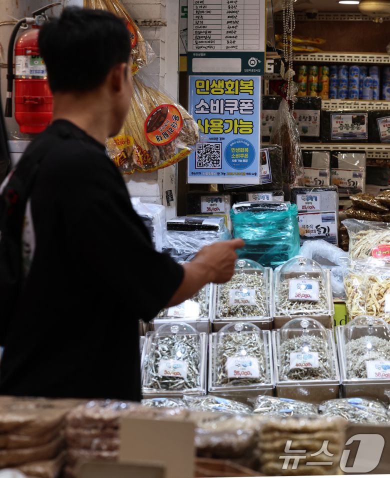 (서울=뉴스1) 구윤성 기자 = 민생회복 소비쿠폰 1차 신청 첫 날인 21일 서울의 한 전통시장에 쿠폰 사용 관련 포스터가 붙어 있다. 2025.7.21/뉴스1