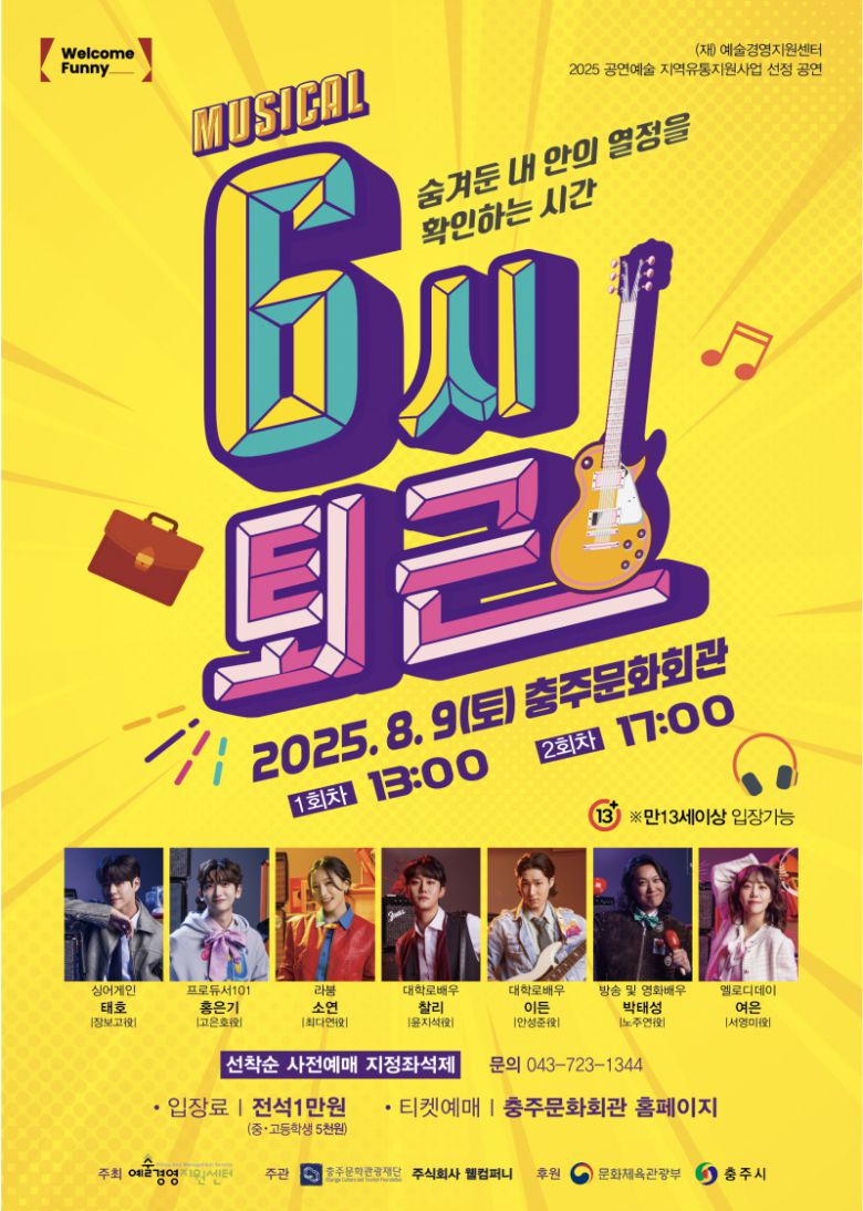 [이현 기자] 충북 충주문화관광재단이 오는 8월 9일 충주시문화회관에서 직장인의 애환을 그린 오피스 뮤지컬 '6시 퇴근'을 무대에 올린다.