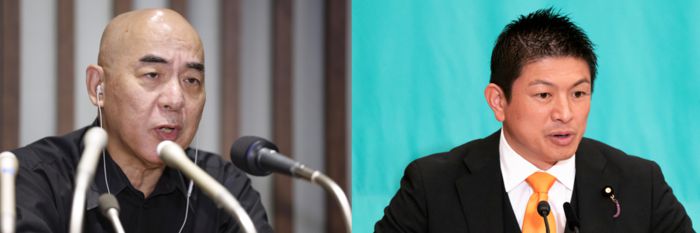 햐쿠타 나오키 일본 보수당 대표(왼쪽)와 카미야 소헤이 참정당 대표(오른쪽) |