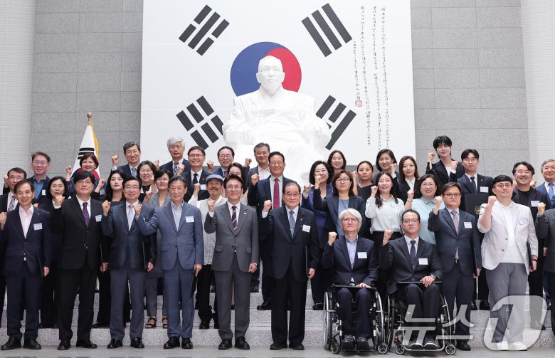 (서울=뉴스1) 김성진 기자 = 김민석 국무총리가 21일 서울 용산구 백범김구기념관에서 열린 광복 80주년 기념사업 추진위원회 출범식에서 참석자들과 기념촬영을 하고 있다. 2025.7.21/뉴스1ssaji@news1.krCopyright ⓒ 뉴스1. All rights reserved. 무단 전재 및 재배포, AI학습 이용 금지.이 기사의 카테고리는 언론사의 분류를 따릅니다.0공유하기