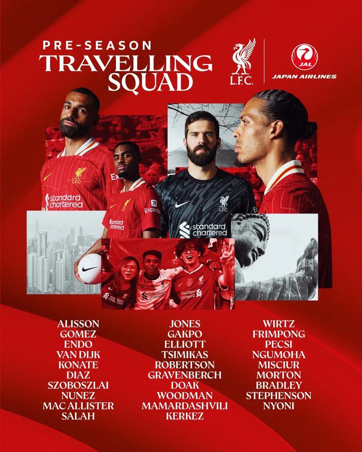 리버풀은 21일(한국시간) 구단 SNS를 통해 프리시즌 아시아 투어에 참가할 29인의 명단을 공개했다. 명단에는 올여름 리버풀에 합류한 플로리안 비르츠, 제레미 프림퐁, 밀로시 케르케즈와 지난 시즌 미리 영입을 확정 지었던 기오르기 마마르다슈빌리 등이 포함됐다.
