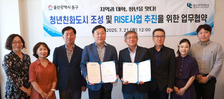 [울산=뉴시스] 박수지 기자 = 울산시 동구는 21일 울산과학대학교와 '청년친화도시 조성 및 RISE사업 추진을 위한 업무협약'을 체결했다.