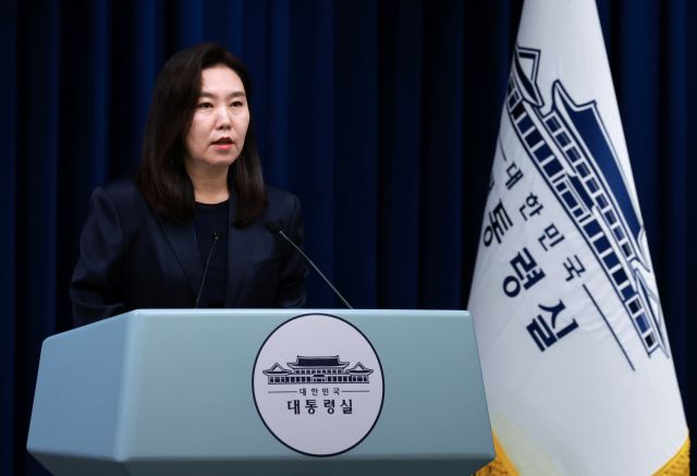 ▲강유정 대통령실 대변인이 21일 서울 용산 대통령실 청사에서 현안 브리핑을 하고 있다. ⓒ연합뉴스 |
