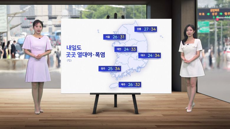 내일 서울 낮 기온은 31도, 대전은 33도, 대구는 34도를 보이겠습니다.