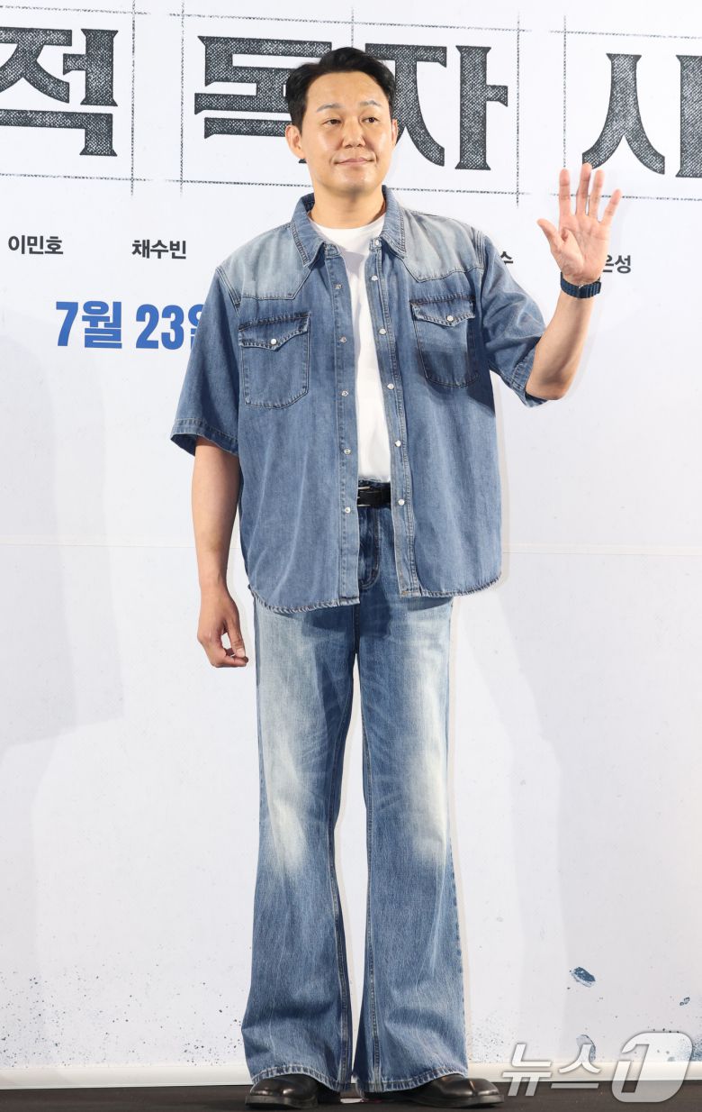 (서울=뉴스1) 권현진 기자 = 배우 박성웅이 21일 서울 송파구 롯데시네마 월드타워점에서 열린 영화 '전지적 독자 시점‘(감독 김병우) VIP 시사회에 참석해 포즈를 취하고 있다. '전지적 독자 시점'은 10년 이상 연재된 소설이 완결된 날 소설 속 세계가 현실이 되어 버리고, 유일한 독자였던 ‘김독자’가 소설의 주인공 ‘유중혁’ 그리고 동료들과 함께 멸망한 세계에서 살아남기 위한 판타지 액션 영화다. 2025.7.21/뉴스1
