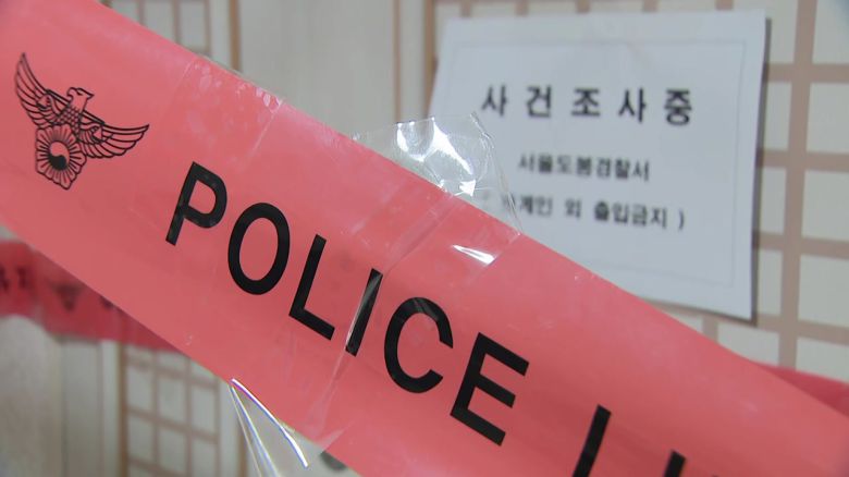 아파트 내부에 경찰 통제선이 쳐져 있고 사건을 조사하고 있다는 종이가 현관문에 붙어있습니다.