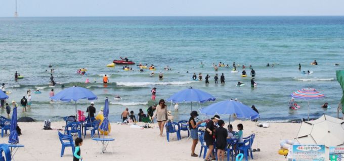 폭염특보가 발효된 20일 오후 제주시 애월읍 곽지해수욕장에서 피서객들이 물놀이로 더위를 쫓고 있다. /사진=뉴스1