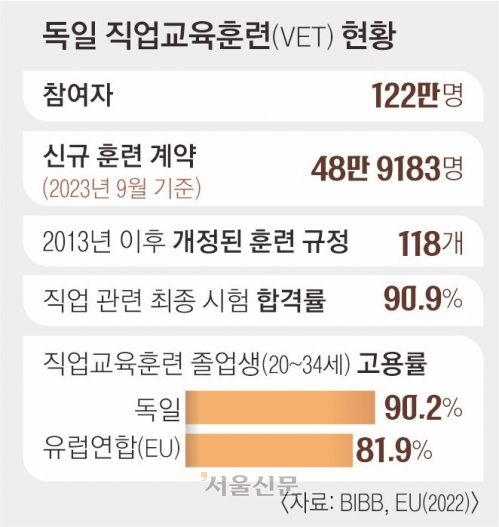 이동임 한국직업능력연구원 박사는 “독일 기업은 직접 투자해 인력을 키워 낸다는 철학이 강하다”며 “노사 파트너십을 통해 숙련 인력에 대한 보상과 급여도 보장되는 선순환 구조”라고 했다.