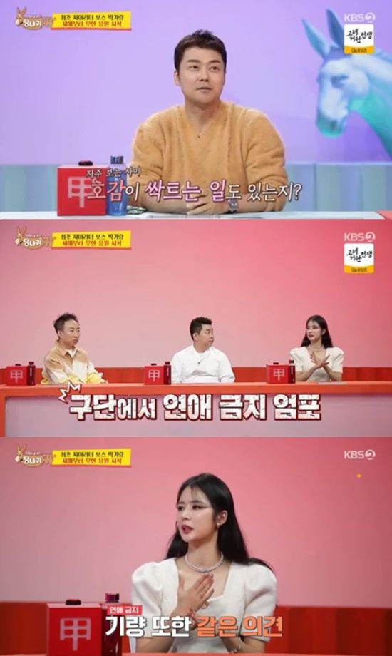 이날 박기량은 "SNS DM으로 선수들에게 대시를 많이 받지만, 암묵적으로 치어리더와 선수 사이에 연애는 금지"라며 치어리더 금기사항을 밝혔다.