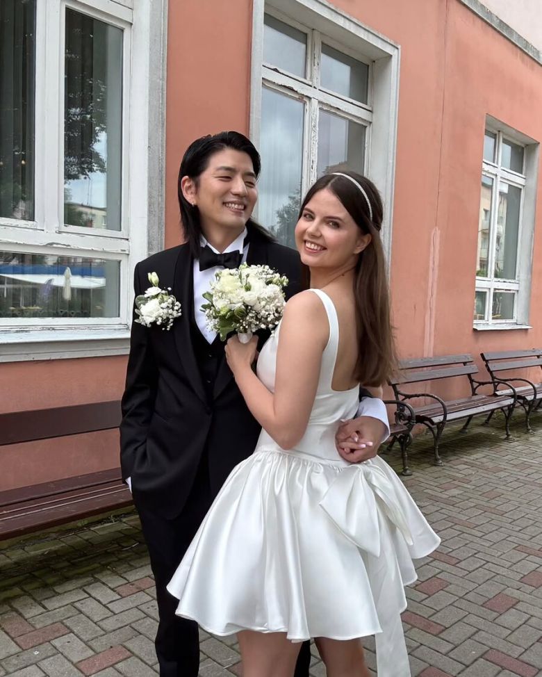 공개된 사진에는 턱시도와 하얀 드레스를 차려입은 맹기용과 폴란드인 여자친구 커플의 모습이 담겼다. 두 사람은 결혼반지를 내밀고 환하게 웃는가 하면 부케를 들고 다정하게 포즈를 취하며 결혼 소식을 전했다.