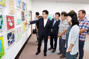 22일에는 윤건영 충청북도교육감이 전시장을 방문, 전시작을 관람하며 어린이 예술 활동에 대한 깊은 관심을 표했다.