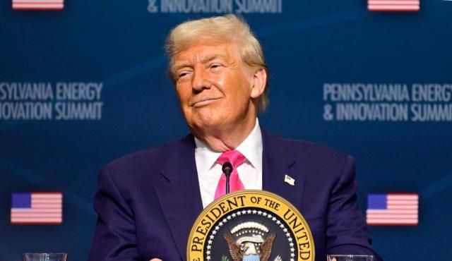 도널드 트럼프 미국 대통령이 지난 15일 펜실베이니아주 피츠버그에서 열린 ‘제1회 펜실베이니아 에너지·혁신 서밋’에서 발언하고 있다. 피츠버그 UPI 연합뉴스 |