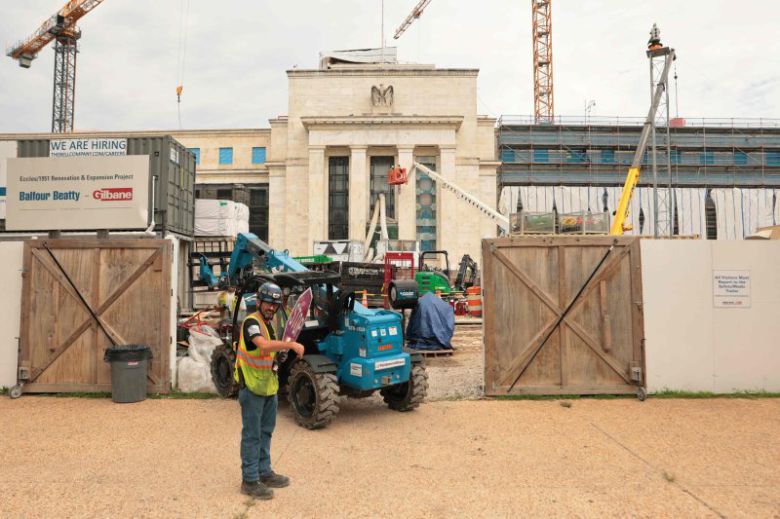 18일(현지시간) 미국 워싱턴DC의 연방준비제도(연준) 본부에서 보수 공사가 진행되고 있다.AFP연합뉴스