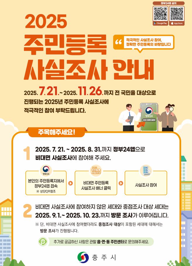 [이현 기자] 충북 충주시가 오는 11월 26일까지 '2025년 주민등록 사실조사'를 실시한다.