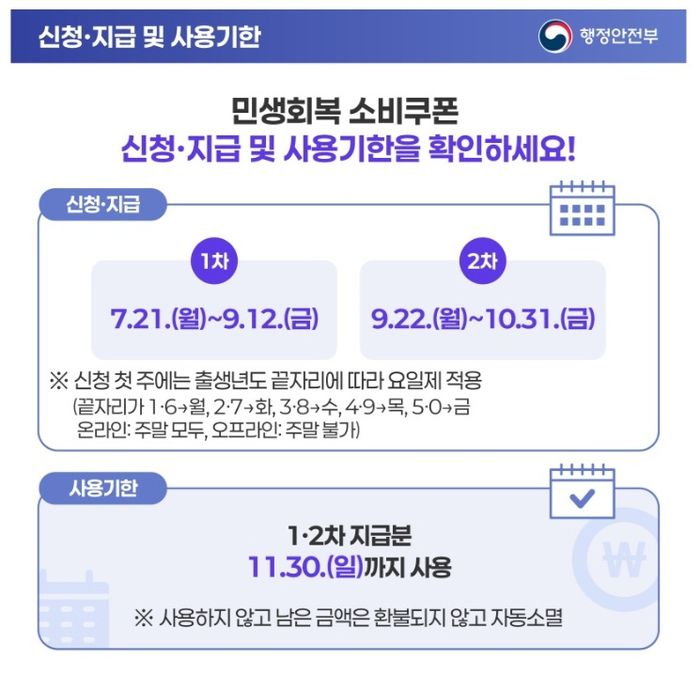 지원금은 신청 다음 날 지급되며 11월 30일까지 사용해야 한다. 미사용 금액은 환급 없이 자동 소멸된다.