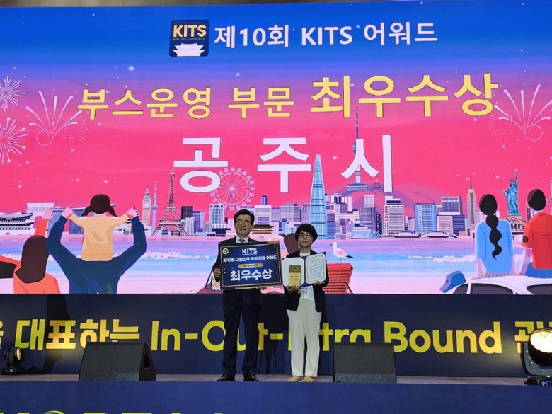 충남 공주시가 '10회 대한민국 국제 관광박람회'에 참가해 자치단체 가운데 부스 운영 부문 '최우수상'을 수상 관광자원의 우수성과 홍보 역량을 대외적으로 인정받았다.