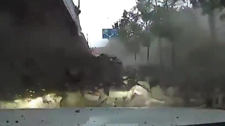YTN이 단독 입수해 보도한 사고 영상을 보면 하얀색 승용차 한 대가 지나갈 때 갑자기 고가도로 옹벽이 부풀어 오르더니 토사가 마구 쏟아져 내리는 모습을 확인할 수 있습니다.