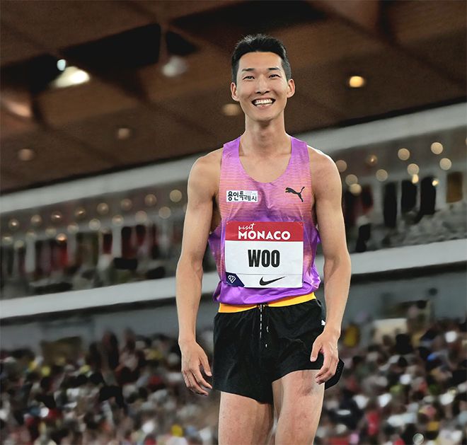 우상혁이 7월12일(한국시간) 모나코 스타드 루이 2세 경기장에서 열린 2025 다이아몬드 리그 10차 대회 남자 높이뛰기 경기에서 특유의 미소를 보여주고 있다. 2m 34의 기록으로 금메달을 따내며 9월 도쿄 세계육상선수권대회 출전권을 따냈다. 사진=REUTERS=연합뉴스 제공